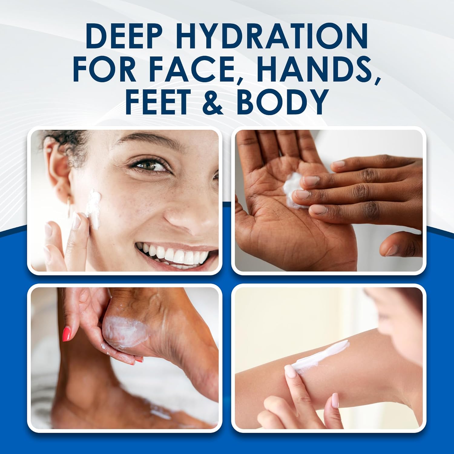 • Directions: Apply moisturizer as often as needed to face, hands, feet and body or as directed by a physician. Ideal for the entire family.