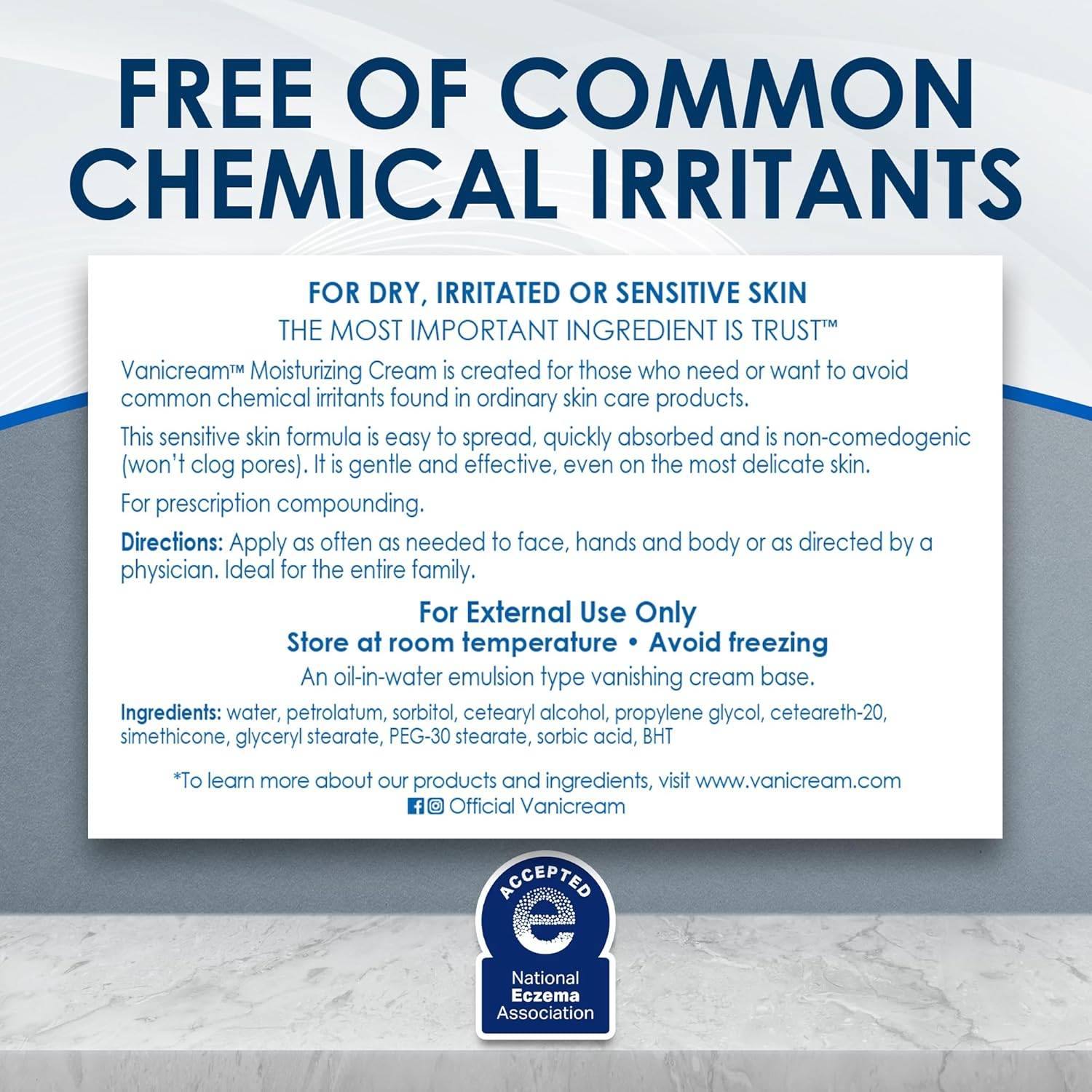 • Vanicream is the #1 Dermatologist recommended Brand for Sensitive Skin: Source IQVIA ProVoice Survey, 12 months ending July 2023